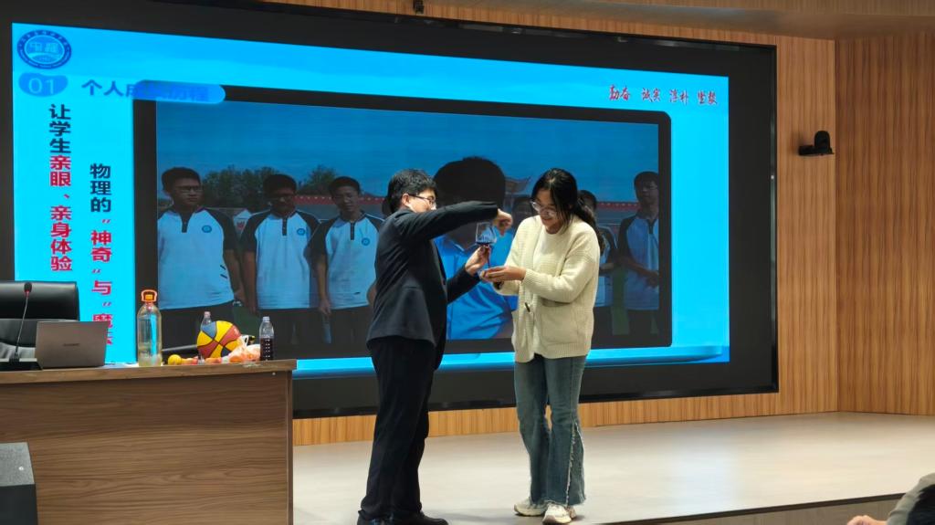 刘华东以自身成长经历为主线,围绕个人成长、成长密码、发展路径、成长感悟与展望四个方向展开分享。他回顾从本科毕业到获评物理高级教师、斩获省及全国最美教师称号的历程,展现了他对教育事业的执着与热爱。报告会现场,刘华东还进行了生动的实验演示,激发了同学们的参与热情,使抽象的物理知识变得直观可感。最后,刘华东分享心得:要对标榜样、借力平台、坚持创新、心怀初心,拒绝“等毕业再实践”。他以“优秀是一种选择”激励师生,鼓励大家深耕教育领域,选择难走却不拥挤的优秀之路。
