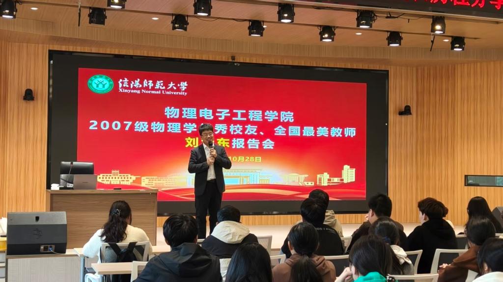 10月28日,我院特邀2007级物理学专业校友、全国最美教师刘华东返校,为我院师范生作题为“扎根育人沃土,向阳专业生长—教师的专业发展之路”的专题报告。