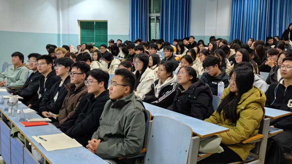 1126日,我院2025级新生入学教育专题报告会在教九204教室举行。学院党委书记方明科以《挺膺担当,不负韶华》为题作专题报告,为新生领航定向。报告会由党委副书记张丽主持,2025级全体新生参会聆听,共同开启大学成长新征程。