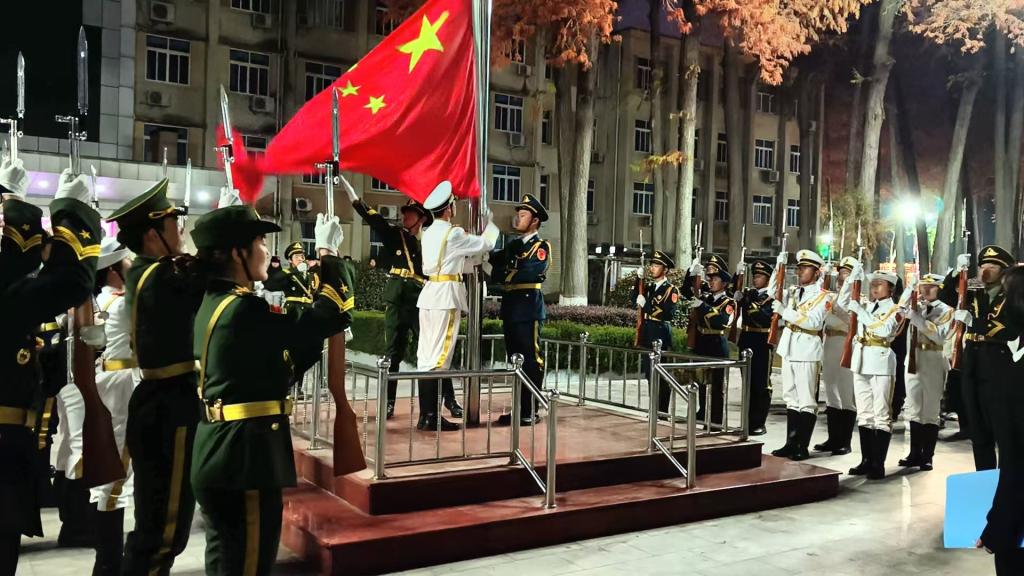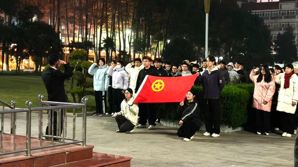 12月8日,我院在行政楼前隆重举行了升旗仪式,学院党委副书记张丽、武装干事赵雪出席活动,学生党员、学生干部代表及2025级全体新生共同参与此次活动。
