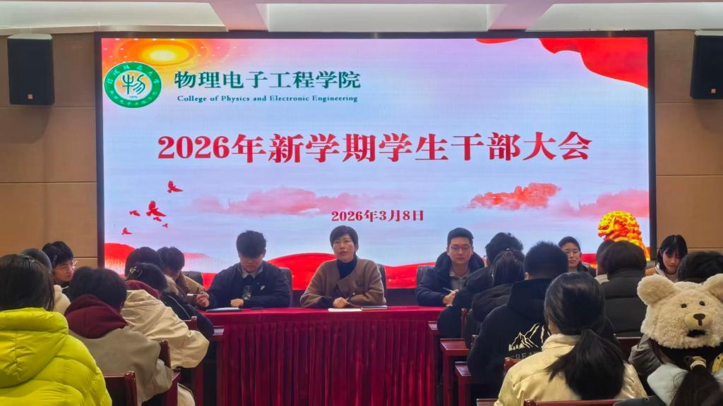 为进一步建强学生工作队伍建设,夯实学生工作基础,推动学生工作高质量发展,3月8日,我院于理科楼402会议室召开新学期学生干部大会。学院党委副书记张丽出席会议,全体学生会成员参加本次会议。
