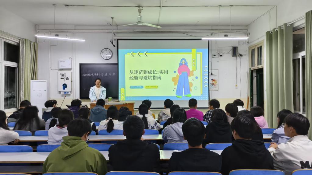 10月18日,我院分别在教二、教三楼开展“星辰引路,薪火相传”明星故事分享会。此次分享会邀请姚婧怡、王恒、刘涛等八位高年级优秀学生为新生做学业规划指导,2025级全体学生参加。